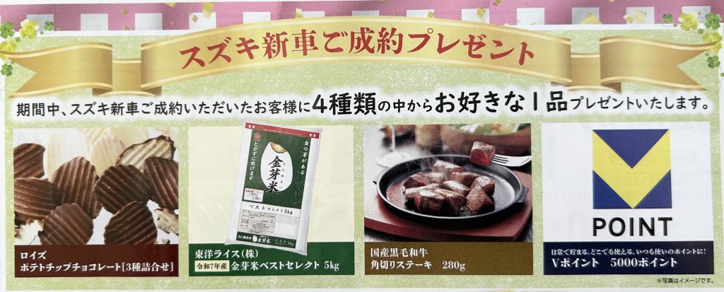 期間中にスズキ新車のご成約をいただいたお客様には